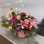 Alstroemeria - 3 шт. Lilium - 2 шт. rosas - 2 шт. margaritas - 5 шт. декоративная коробка - 1 шт. разнообразная сезонная зелень - 4 шт. цветок для заполнения 3 - 3 шт.