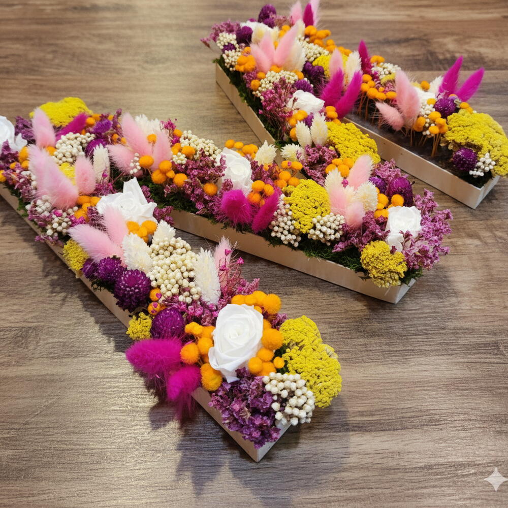 rosa mini preservada - 8 шт. стабилизированный цветок риса - 12 шт. ахиллея желтая стабилизированная - 9 шт. стабилизированные розовые лагурусы - 32 шт. amamelino оранжевый - 20 шт. фаларис сухое белое - 16 шт. сухой розовый лимониум - 15 шт.