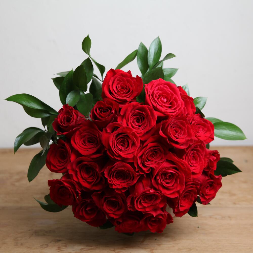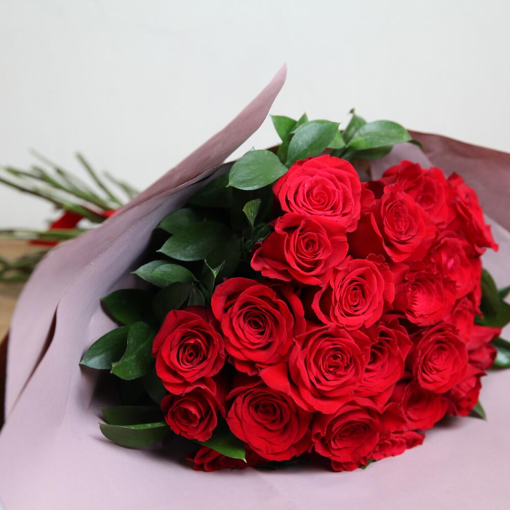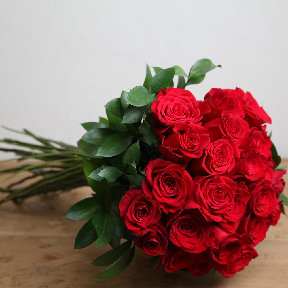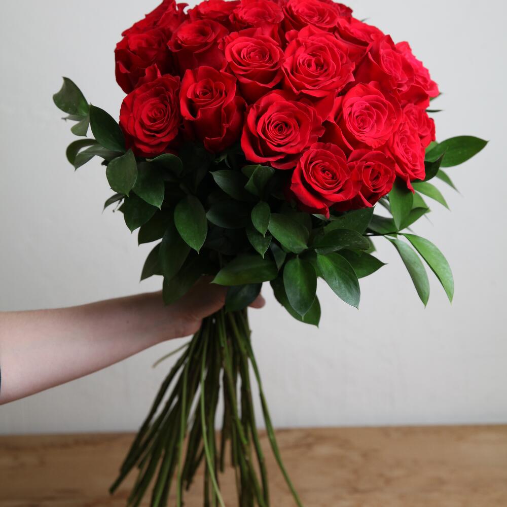 Ruscus - 10 шт. красные розы 70 см - 25 шт. красные розы 70 см - 25 шт.