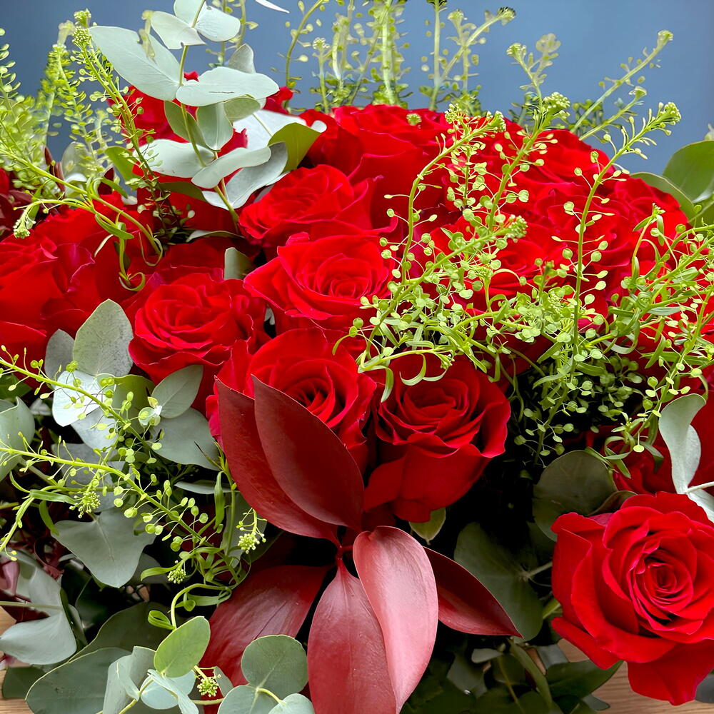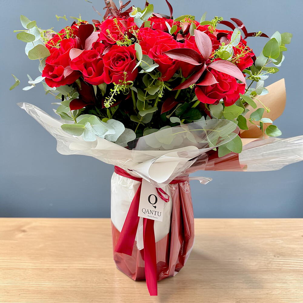 Это авторское изделие — истинное воплощение любви и страсти. Создано из 37 красных роз, каждая из которых тщательно отобрана за насыщенность цвета и природную красоту. В этот букет также включены 12 элементов разнообразной зелени, чтобы придать разнообразие и фактуру. Кроме того, в комплект входит стеклянная ваза, чтобы показать их во всём великолепии. Каждая деталь воплощает любовь и преданность, вложенные в этот предмет флористического искусства. Если вы ищете идеальный подарок, чтобы выразить свои чувства, эта композиция из красных роз — идеальный выбор. Он наполнен любовью, любовью и ещё большей любовью!