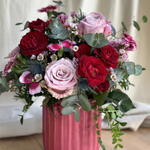 Керамическое кашпо клубничного оттенка с лучшей подборкой роз и цветов в красных, розовых и бордовых тонах. Одна из наших самых популярных композиций благодаря смешению оттенков и видов цветов. Это, без сомнения, идеальный подарок, чтобы сказать «я тебя люблю» тому, кого вы больше всего любите.