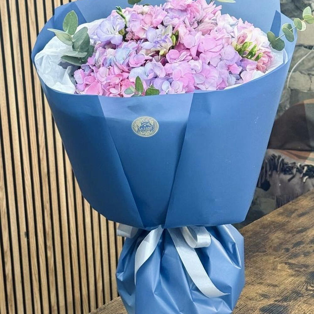 eucalipto - 3 шт. ornithogalum azul - 3 шт. hortensia azul rose - 4 шт.