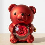 El Oso decorativo con rosa eterna es un encantador regalo romántico original que combina ternura y elegancia en una sola pieza. Este adorable oso en acabado metálico rojo sostiene una rosa preservada en una cápsula transparente, creando un detalle único que simboliza amor eterno y emociones duraderas. Perfecto para sorprender en ocasiones especiales como San Valentín, aniversarios, cumpleaños o declaraciones de amor, este regalo con rosa eterna destaca por su diseño moderno y su significado profundo. La rosa preservada mantiene su belleza durante mucho tiempo sin necesidad de cuidados, convirtiéndolo en un recuerdo inolvidable.
