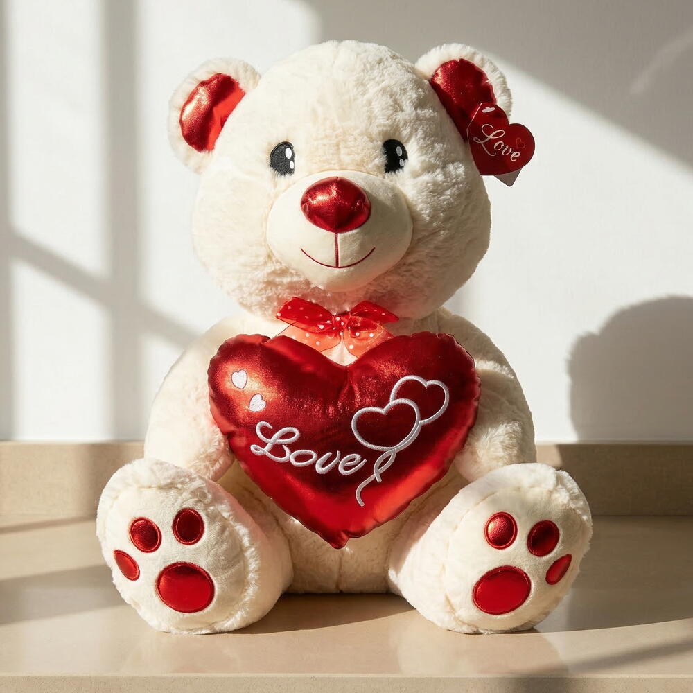 Este encantador oso de peluche blanco tamaño M (60 cm) con corazón rojo “Love” es el regalo perfecto para transmitir amor, ternura y cariño en cualquier ocasión especial. Su diseño suave, elegante y romántico lo convierte en una opción ideal para San Valentín, cumpleaños, aniversarios o Día de la Madre. Gracias a su tamaño grande y su textura agradable, este peluche es perfecto para abrazar, decorar y sorprender a esa persona especial. Es uno de los regalos románticos más populares y buscados, ideal tanto como detalle principal como complemento de un ramo de flores.
