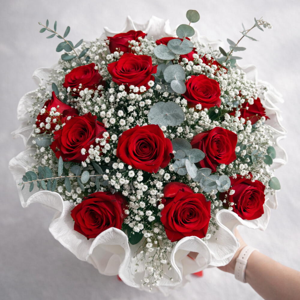 Gypsophila - 6 шт. eucalipto - 8 шт. rosas rojas - 15 шт.