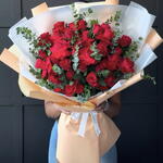 eucalipto - 1 шт. rosas rojas - 40 шт. бант из ленты - 1 шт. корейская бумага - 1 шт.