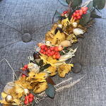 жёлтый сухой лист - 20 шт. искусственные ягоды - 10 шт. декоративные золотые ягоды - 6 шт. декоративные тёмные ягоды - 4 шт. консервированные зелёные листья - 10 шт. листья бордовая окантовка - 10 шт. сухие стебли овса - 8 шт. сухие маковые коробочки - 2 шт. сухой бежевый папоротник - 4 шт. деревянная ветка - 1 шт.
