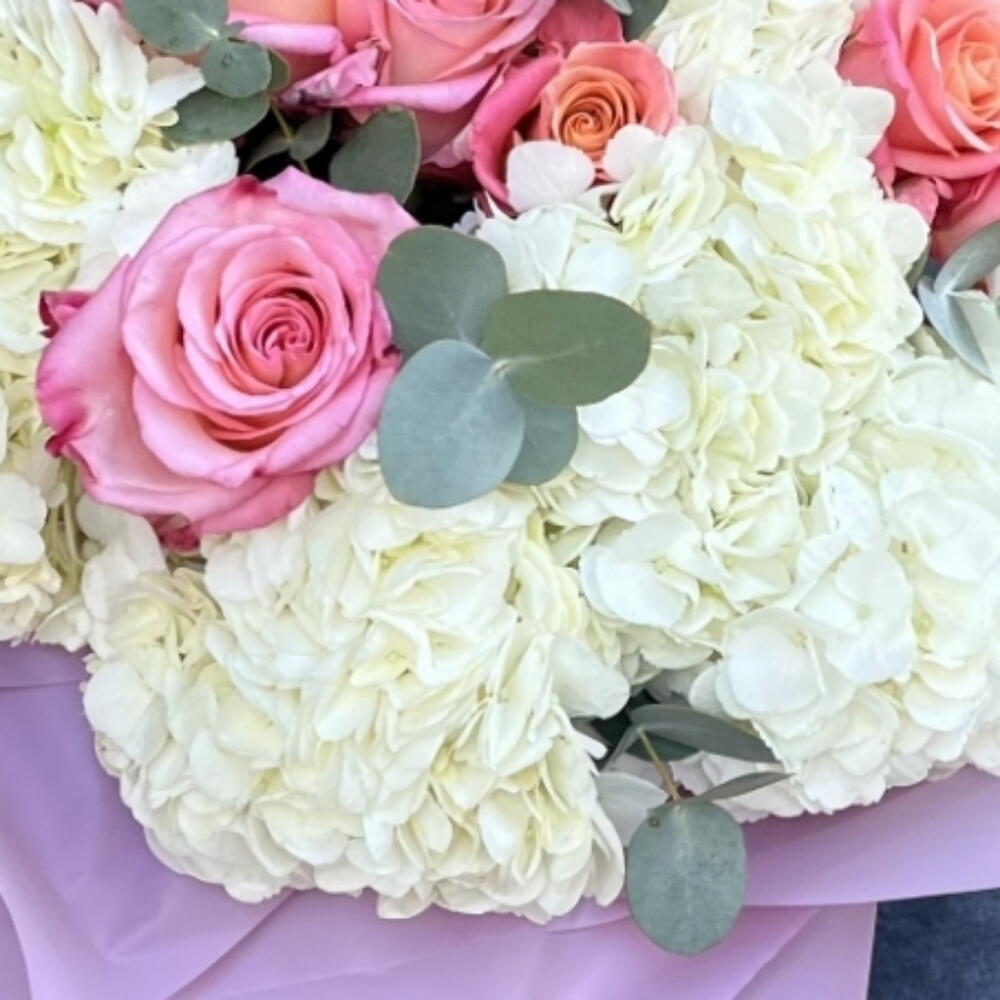 Eucalyptus - 3 шт. rosa - 9 шт. hortensia white - 9 шт.