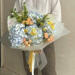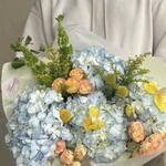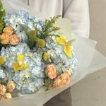 Solidago - 2 шт. Iris - 3 шт. hortensia - 4 шт. kraspediya - 3 шт. rosa - 4 шт. moluccella - 1 шт.