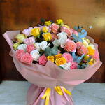 Delicadeza en cada pétalo. Un ramo de rosas ramificadas en tonos alegres es una combinación de ligereza, frescura y romanticismo. Parece estar hecho de sonrisas y momentos cálidos, para regalar emoción y alegrar cualquier día.