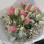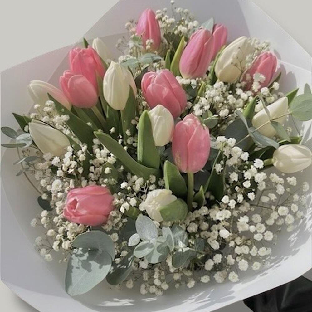 Этот классический букет — воплощение элегантности и простоты, символизирующий глубокую любовь и признательность. Из 8 белых и 8 розовых тюльпанов он представляет собой сочетание чистоты и невинности. В композицию также включены 2 веточки белой гипсофилы, которые придают ей непревзойденную нежность. Каждый букет упакован в 2 листа белой корейской бумаги, что добавляет роскоши и изысканности. В качестве завершающего штриха прилагается 1 атласная лента, придающая букету элегантный и нежный вид. Это идеальный подарок для любимого человека или прекрасный способ добавить свежести и спокойствия в любое пространство.