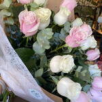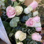 роза пинк мондиаль - 9 шт. декоративная бумага - 1 шт. rosa mondial blanca - 9 шт. декоративный бант - 1 шт.