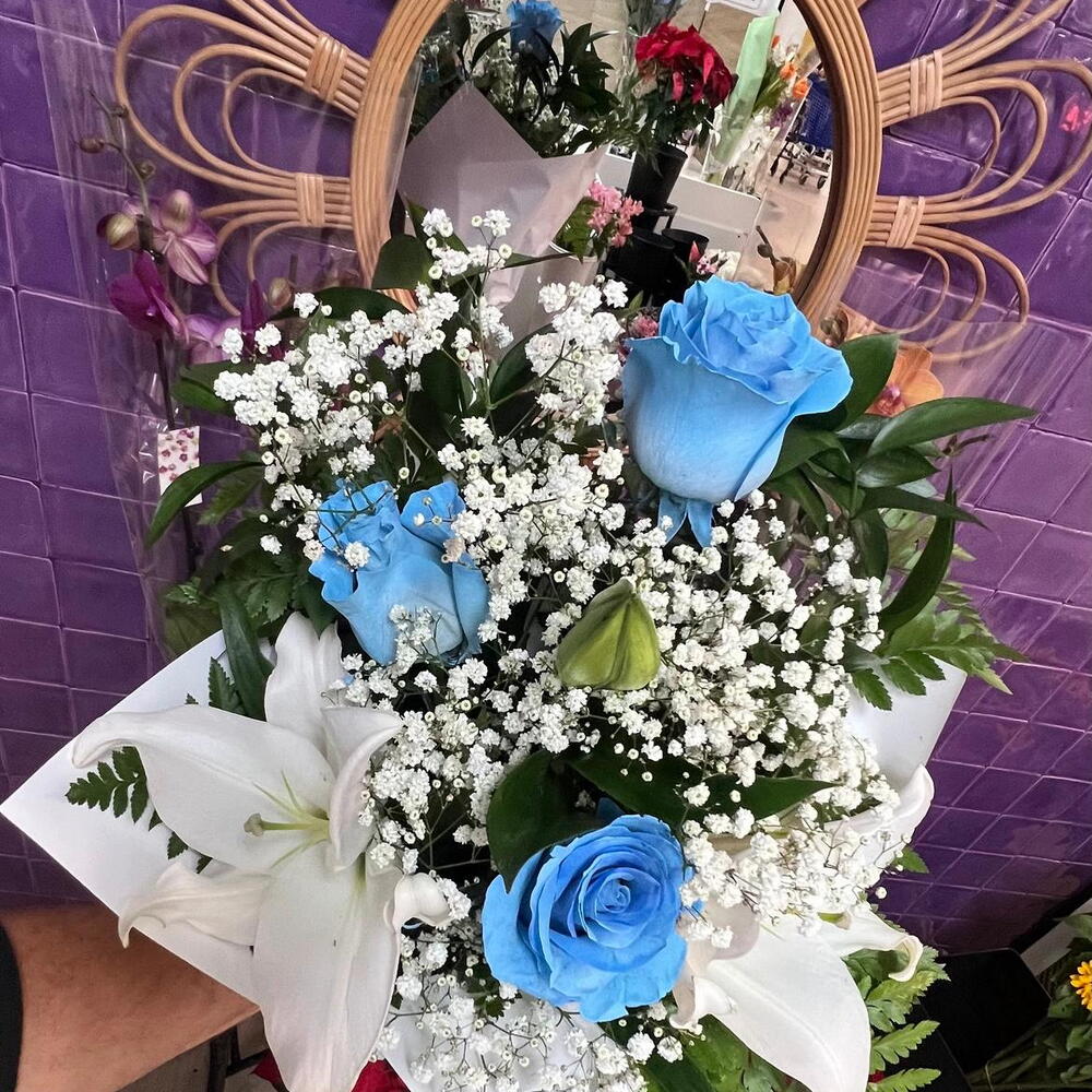 Lilium - 4 шт. paniculata - 5 шт. синие розы - 3 шт.