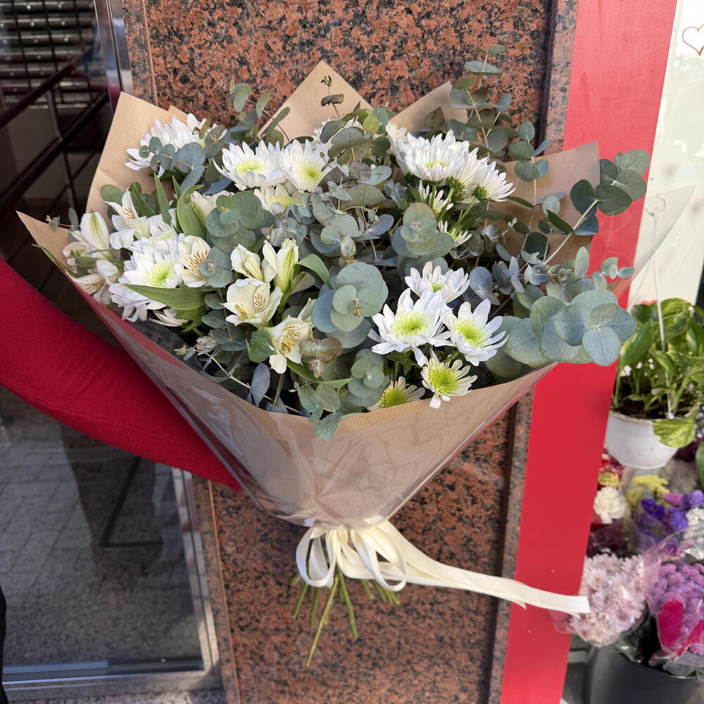 alstroemerias - 3 шт. хризантемы - 5 шт. эвкалипт - 9 шт.