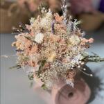 Эта очаровательная композиция из стабилизированных цветов составлена из изысканного набора природных элементов. Она включает пять стеблей статицы нежного лососевого оттенка, подчеркнутых четырьмя веточками лаванды. Четыре стебля белой гипсофилы и четыре белых цветка бессмертника добавляют нотку свежести. Белый лен добавляет мягкости благодаря трем стеблям, а три веточки оксодии придают уникальную текстуру. Наконец, две веточки эвкалипта мелколистного добавляют этой очаровательной композиции жизнерадостный и бодрящий штрих. Эта композиция идеально подходит для любого пространства, где необходимо сохранить прикосновение природы, и станет стильным и элегантным акцентом.