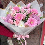 Gypsophila - 3 шт. Lilium - 1 шт. mini gerbera - 4 шт. tulipanes - 11 шт. хризантемы - 4 шт.