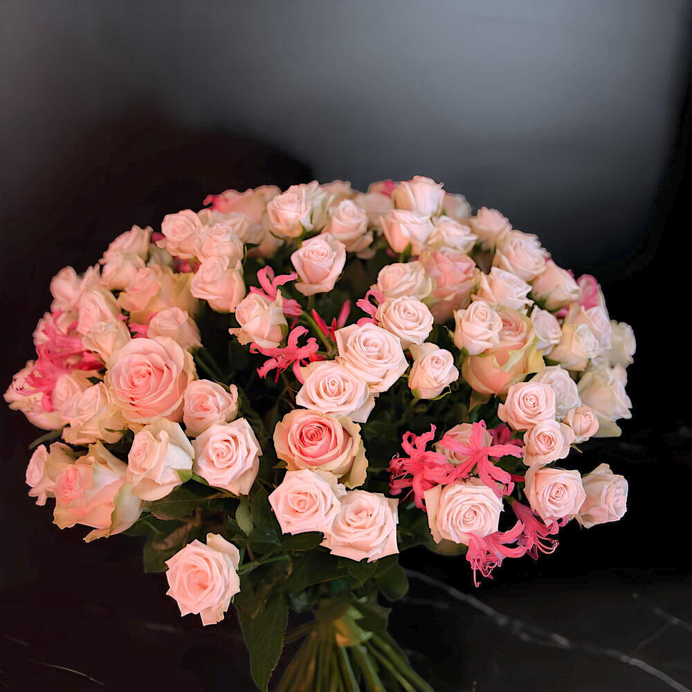 Este exquisito arreglo floral de la categoría De autor está compuesto por rosas espray de Ecuador y rosas adicionales, lo que lo convierte en una encantadora mezcla de elegancia y estilo. Las rosas de Ecuador son apreciadas mundialmente por su belleza impresionante y calidad superior, garantizando que este arreglo ilumine cualquier espacio y transmita un sentido de sofisticación y amor.