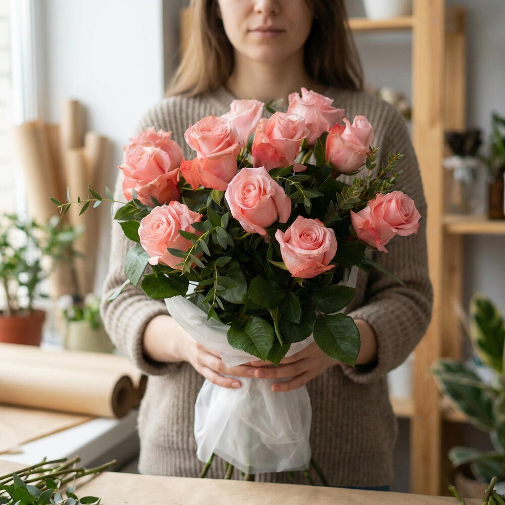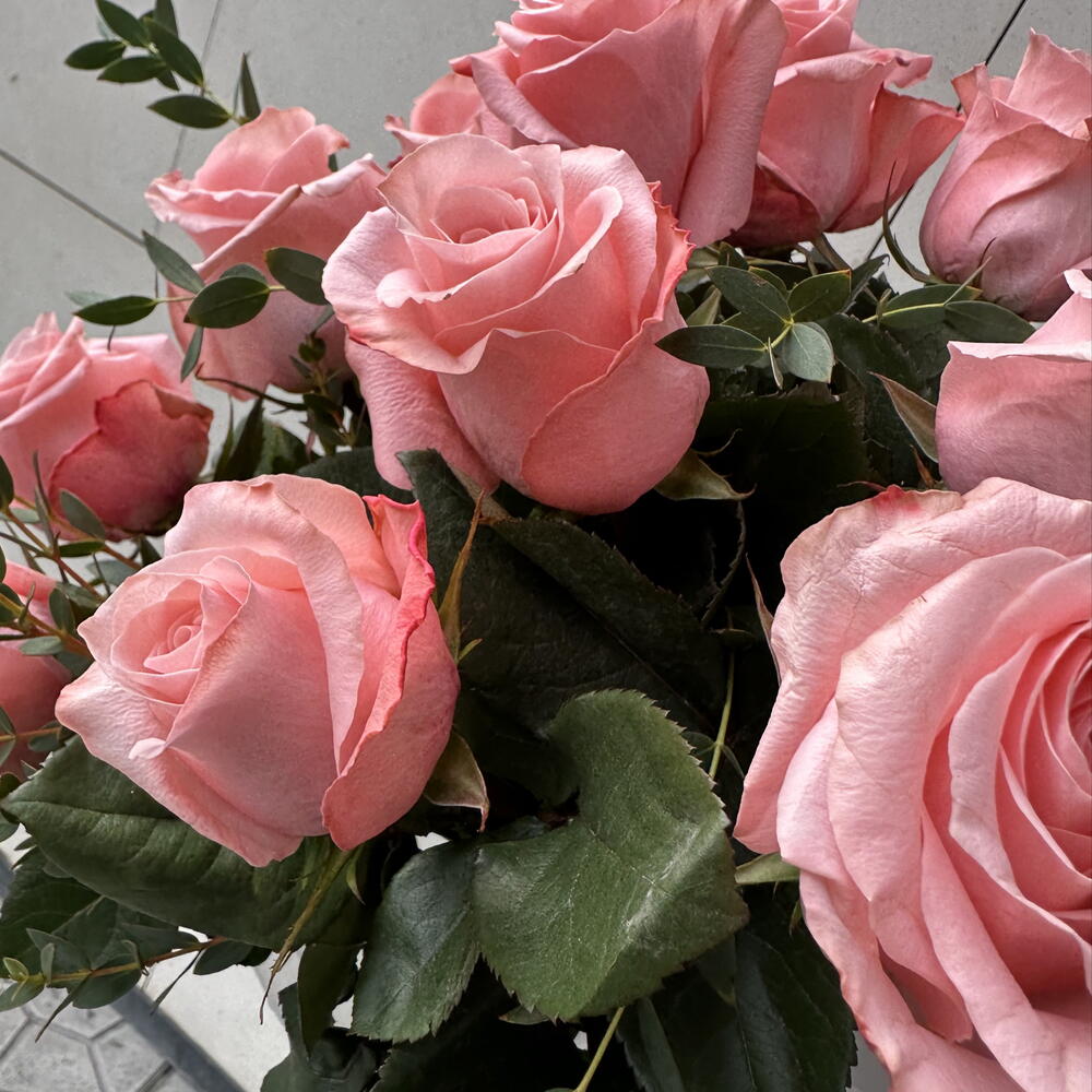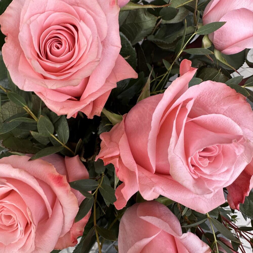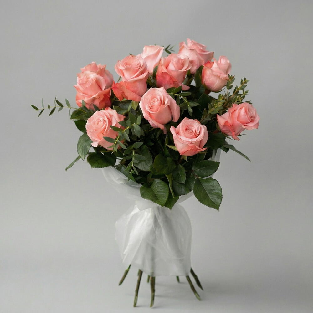 Un ramo encantador compuesto por 11 rosas Be Sweet, reconocidas por su delicado tono rosado suave que transmite dulzura y romanticismo. La frescura del eucalipto aporta un contraste natural con su verde elegante y su textura ligera, dando al arreglo un estilo moderno y aireado. La combinación crea una composición equilibrada, aromática y visualmente sofisticada.