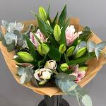 Este encantador ramo clásico está compuesto por 5 flores de lirios que brindan una esencia delicada y elegante, y una unidad de eucalipto para un toque fresco y herbal. Producidas cuidadosamente para asegurar su belleza y durabilidad, estas flores son la elección perfecta para cualquier ocasión o para simplemente alegrar su día.