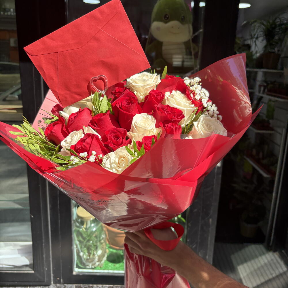 Осветите свои дни классическим и ярким акцентом Ramos clásicos. Этот прекрасный букет сочетает 12 насыщенных красных роз и 12 чистых белых роз, которые вместе создают восхитительное сочетание. Для создания красивого контраста добавлены 4 веточки паникулаты, что придаёт этому букету очаровательную тонкость. Кроме того, 5 разнообразных зелёных элементов украшают композицию, придавая свежесть и разнообразие текстур. Этот великолепный Ramos clásicos идеально подходит как для подарка, так и для особого случая или просто чтобы украсить любое пространство с элегантностью и стилем.