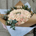 rosas - 49 шт. эвкалипт цинерея - 10 шт. разнообразная зелень - 6 шт.