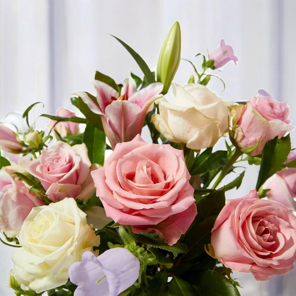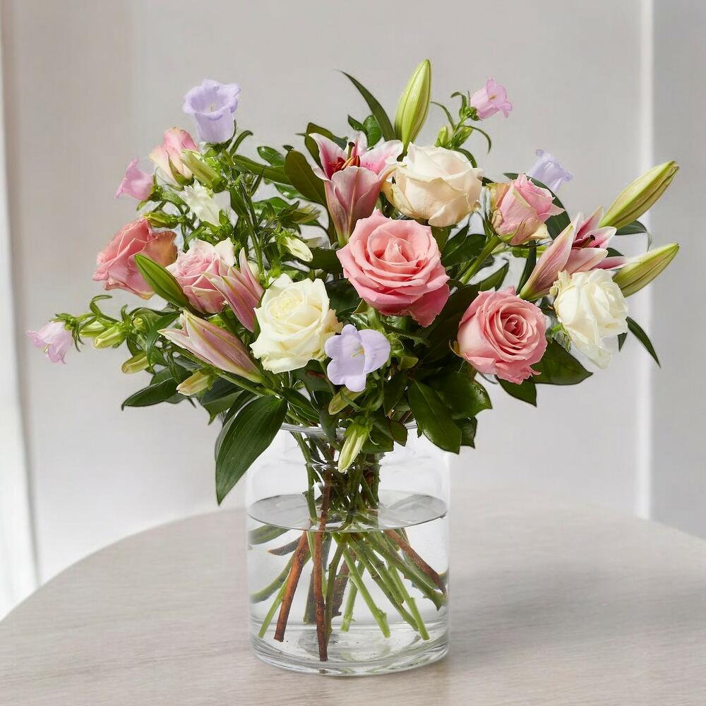 Празднуйте смену сезонов этим прекрасным букетом, который сочетает свежесть разнообразных роз, элегантность лилий и изящество стеблей колокольчика. Эта очаровательная цветочная композиция, состоящая из 21 стебля сезонных цветов мая и июня, прекрасно дополняется свежей листвой рускуса, придавая естественный и гармоничный штрих. Она идеальна для особых случаев или для украшения любого пространства со стилем и изысканностью. Чтобы букет оставался свежим и ярким, срежьте стебли под углом перед тем, как поставить их в вазу с чистой водой. Меняйте воду каждые два дня и держите букет в прохладном месте, вдали от прямых солнечных лучей и сквозняков. Эти простые меры по уходу продлят красоту и свежесть цветов, позволяя вам дольше наслаждаться ими.