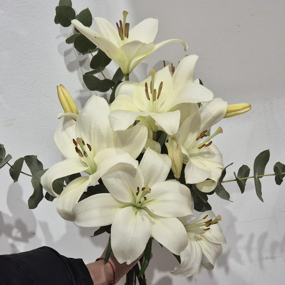 Этот дизайнерский продукт отличается изысканной композицией. Он включает в себя четыре белые лилии, ценимые за свою чистоту и нежность, добавляющие элегантности и свежести. Их дополняют три цветка эвкалипта серого, известного своим неповторимым ароматом и успокаивающими свойствами. Композицию завершает стеклянная ваза, отражающая свет и подчеркивающая красоту цветов. Это изделие идеально подходит для того, чтобы добавить изысканности и свежести любому пространству.