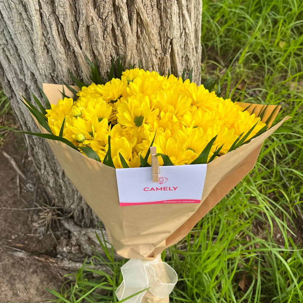 карточка с пожеланием - 1 шт. декоративная бумага - 1 шт. маргаритки цвет на выбор - 15 шт.