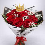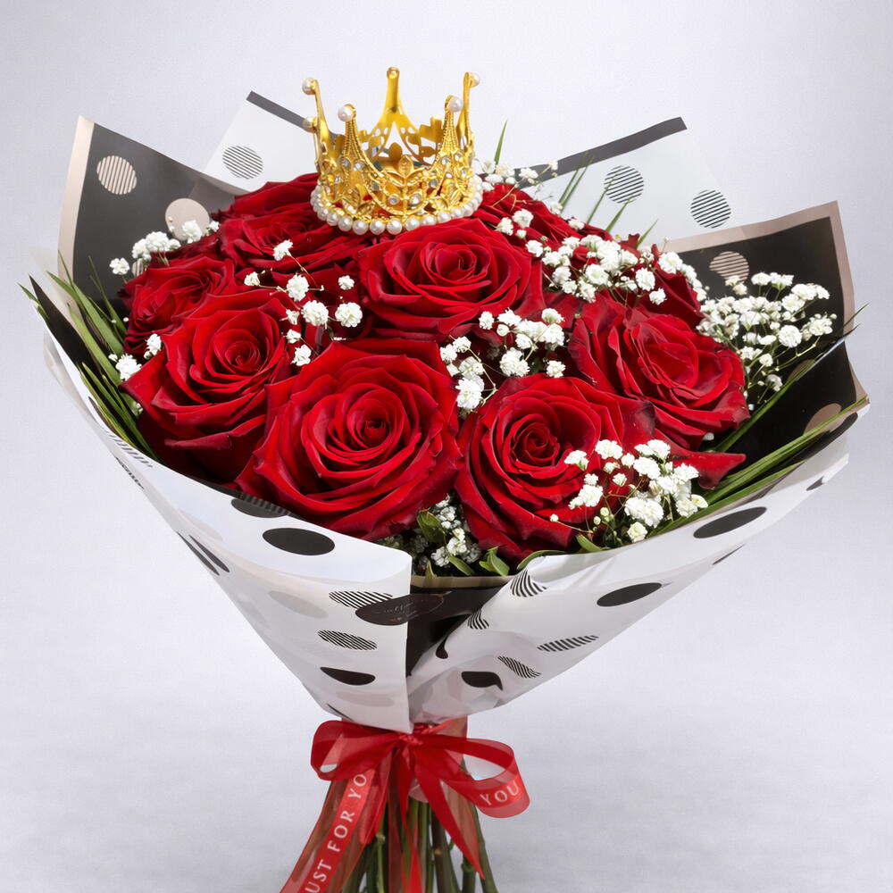 paniculata - 3 шт. cinta de raso - 1 шт. красная роза - 12 шт. лентиск - 5 шт. корона - 1 шт. корейская бумага или - 2 шт.