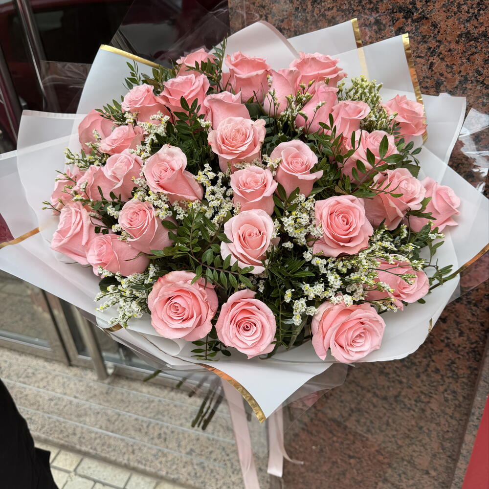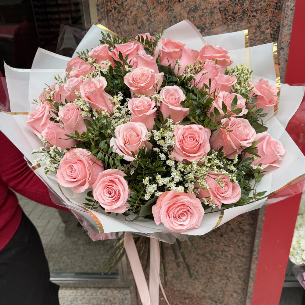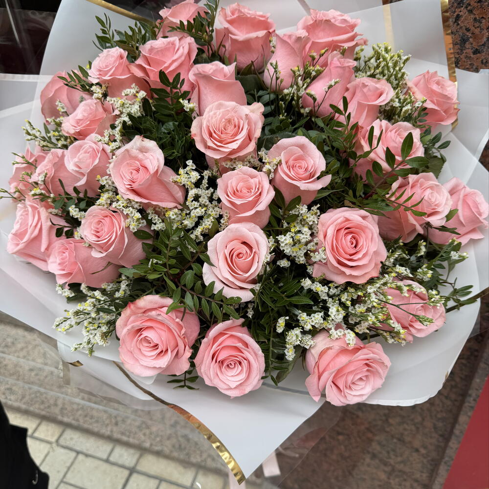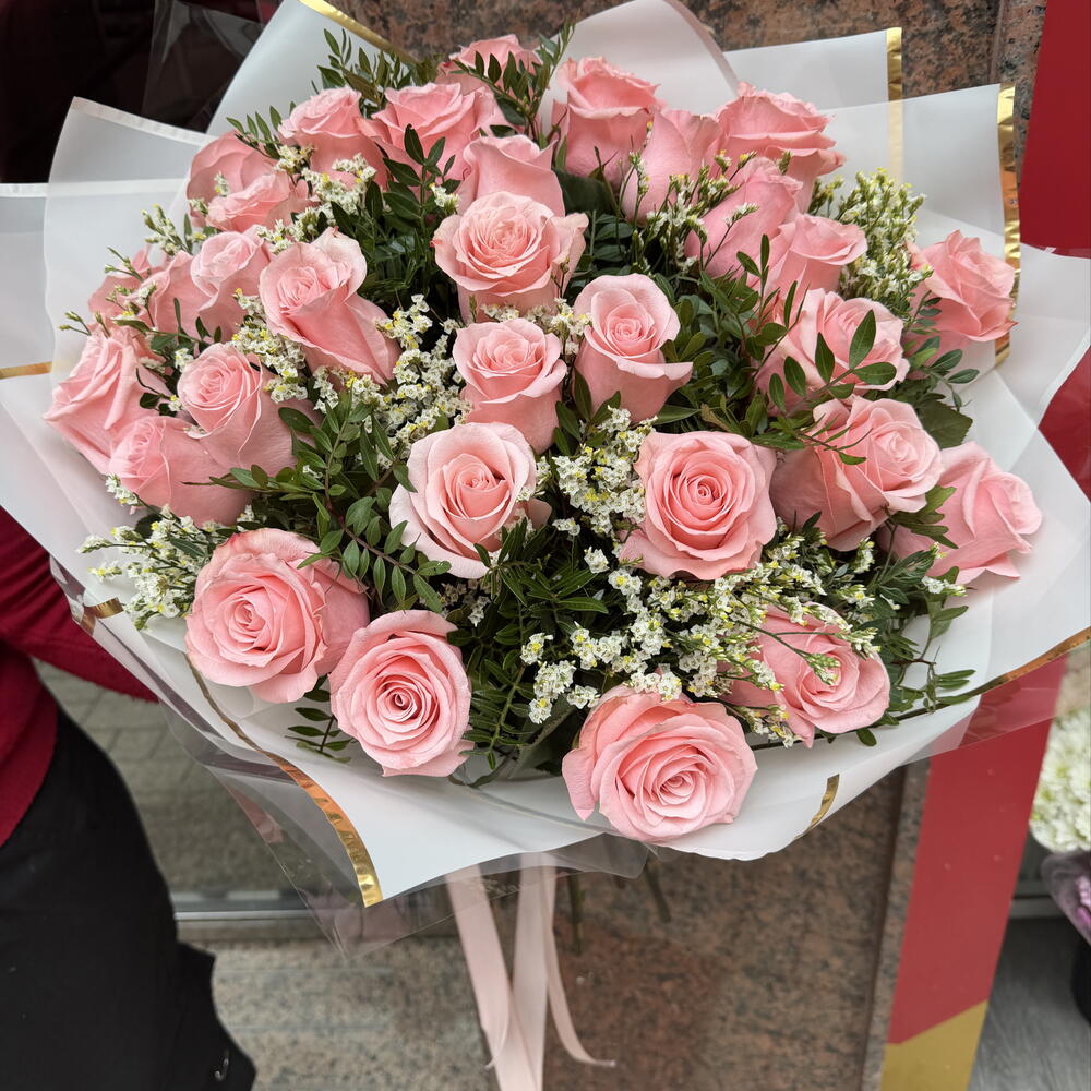 Limonium - 1 шт. rosas rosadas - 31 шт. лентиск - 1 шт.