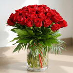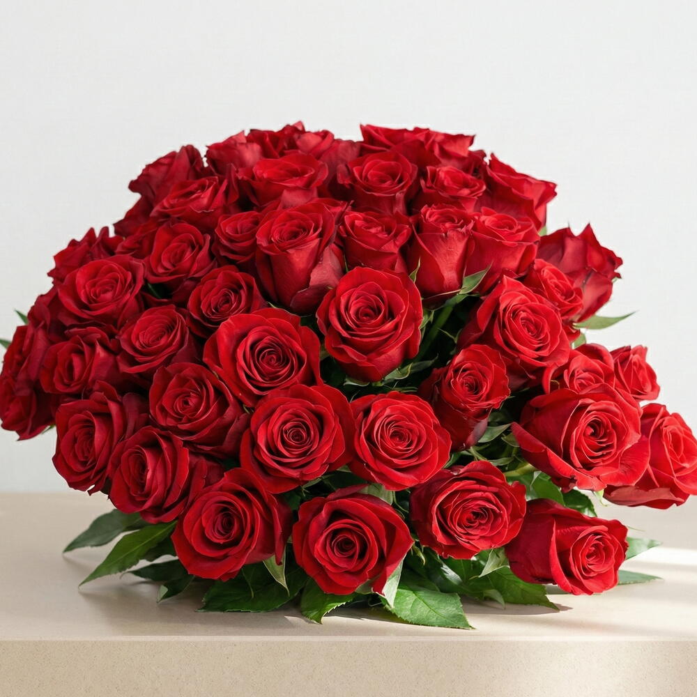 Букет 50 КОРОТКИХ РОЗ — это впечатляющая цветочная композиция, созданная, чтобы удивлять и трогать. Он изготовлен из 50 натуральных красных роз со средним стеблем (50 см), тщательно отобранных по свежести, насыщенному цвету и идеальной форме. Красные розы символизируют глубокую любовь, страсть и восхищение, что делает этот букет одним из самых впечатляющих и романтичных подарков. Композиция дополняется орнаментальной тропической и декоративной зеленью, которая придаёт объём, элегантность и эффектное присутствие.