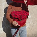 Este magnífico arreglo en forma de corazón, compuesto por exuberantes rosas rojas, es el símbolo perfecto de amor eterno y pasión. Cada rosa, con su profundo color carmesí, ha sido seleccionada cuidadosamente para transmitir emociones sinceras y duraderas. Presentado en una elegante caja roja que realza su belleza, este diseño es ideal para celebraciones románticas, aniversarios o momentos especiales que merecen ser recordados. Un regalo impresionante que dejará sin palabras a esa persona tan especial.