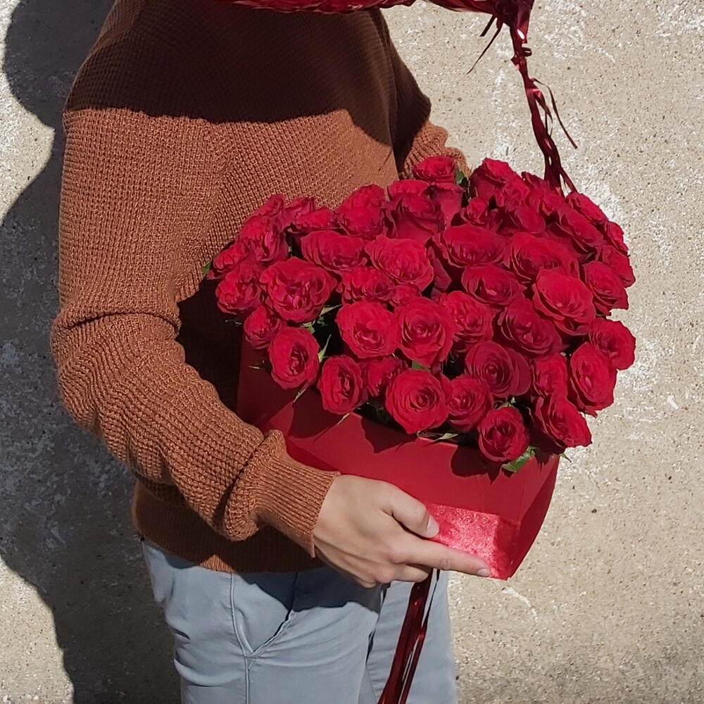 Este magnífico arreglo en forma de corazón, compuesto por exuberantes rosas rojas, es el símbolo perfecto de amor eterno y pasión. Cada rosa, con su profundo color carmesí, ha sido seleccionada cuidadosamente para transmitir emociones sinceras y duraderas. Presentado en una elegante caja roja que realza su belleza, este diseño es ideal para celebraciones románticas, aniversarios o momentos especiales que merecen ser recordados. Un regalo impresionante que dejará sin palabras a esa persona tan especial.