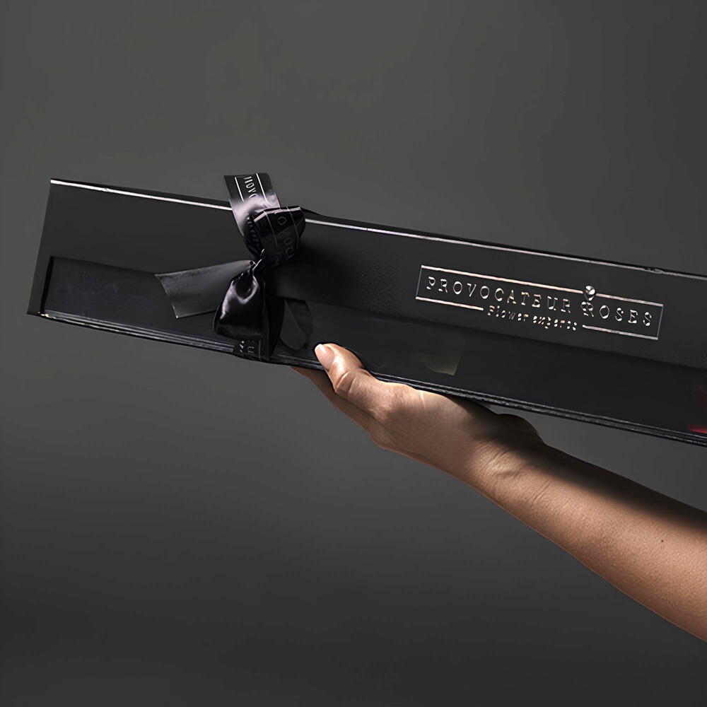 Вечная красная роза с стеблем в коробке