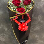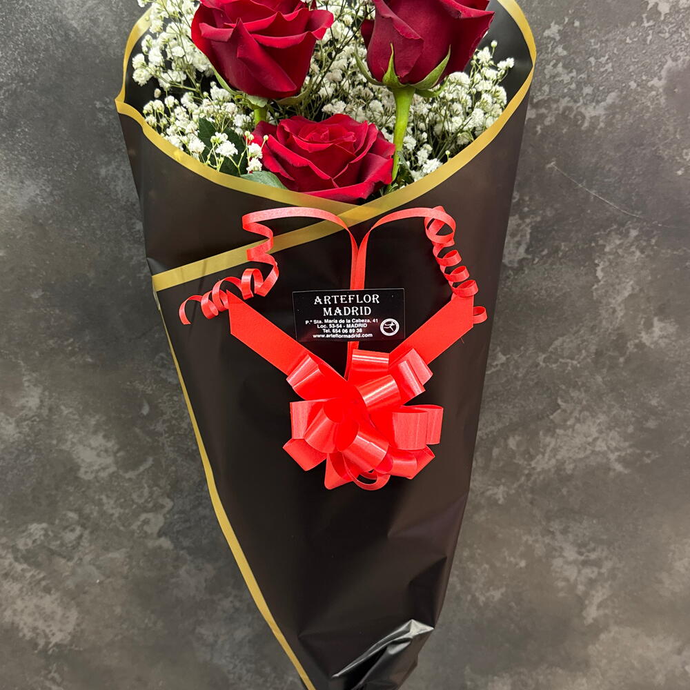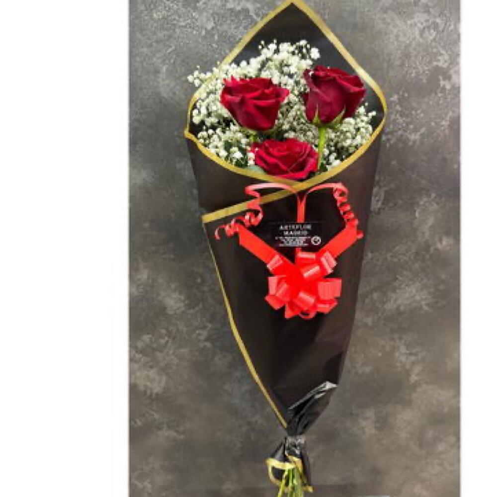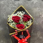 rosas rojas - 3 шт. белая гипсофила - 2 шт. специальная упаковка - 1 шт.