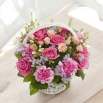 Эта очаровательная цветочная корзина сочетает розовые оттенки в идеальной смеси роз, гвоздик и статицы, вызывая нежность и романтику. Идеальна для особых случаев, таких как годовщины, дни рождения или чтобы порадовать кого-то особенного, эта композиция добавляет нотку элегантности и свежести в любое пространство. Благодаря оформлению в белой корзине, это идеальный подарок, который передаёт тепло и заботу.