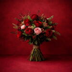 Откройте для себя сущность природы с этой впечатляющей авторской цветочной композицией. Состоит из 13 ярких роз, которые замысловато переплетаются с 2 ветвями эвкалипта и 8 ветвями лентиска. Каждый элемент был тщательно отобран, чтобы создать ослепительный визуальный пейзаж. Определённо, идеальный выбор, чтобы добавить нотку утончённости и элегантности любому пространству.