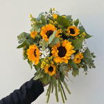 eucalipto - 4 шт. подсолнухи - 7 шт. белая гипсофила - 4 шт. солидаго жёлтое - 4 шт.
