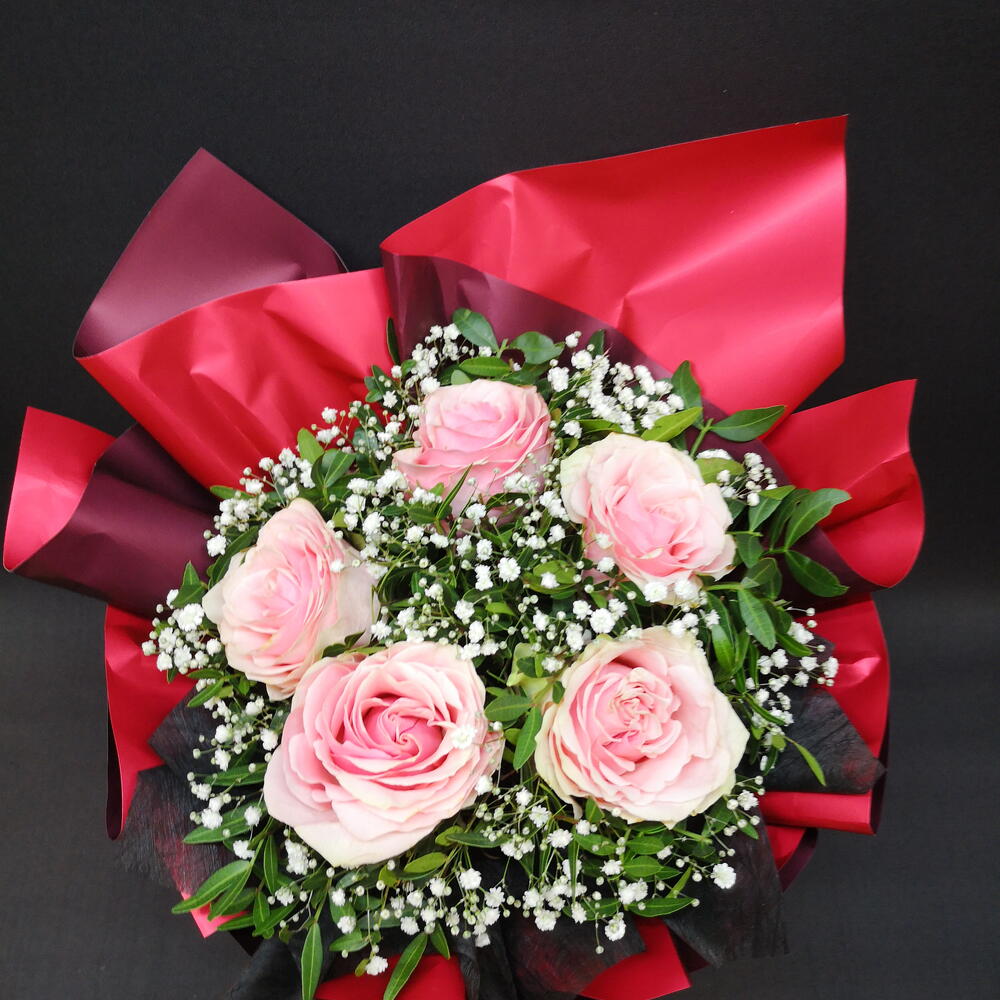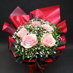 розовые розы - 5 шт. букет paticulata - 1 шт. букет пистация - 1 шт.