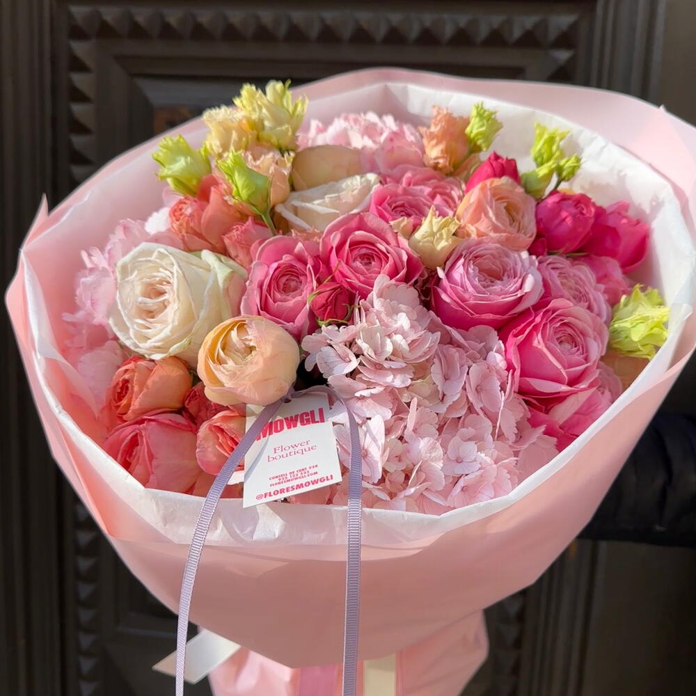 hortensia - 3 шт. Lisianthus - 2 шт. rosa - 3 шт. rosa spray - 5 шт. ranunculos - 3 шт.
