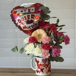 Подарок в кружке с подборкой свежих цветов и шариком! Кружка навсегда будет напоминать о том, с какой любовью вы её подарили!