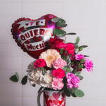 Gerbera - 2 шт. rosas - 2 шт. claveles - 4 шт. разная зелень - 2 шт. гвоздики - 4 шт. шар-сердце - 1 шт. кружка с сердечками - 1 шт.