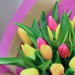 желтые тюльпаны - 7 шт. оранжевые тюльпаны - 6 шт. розовые тюльпаны - 7 шт.