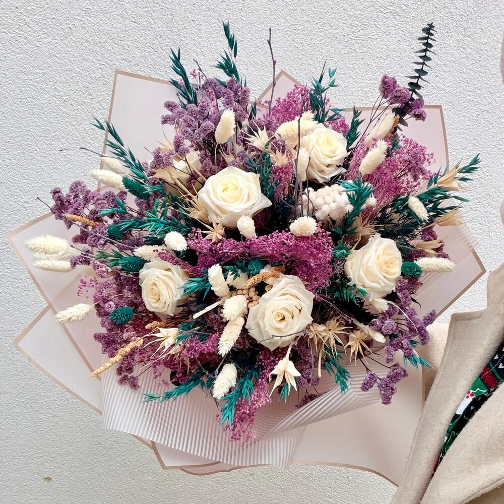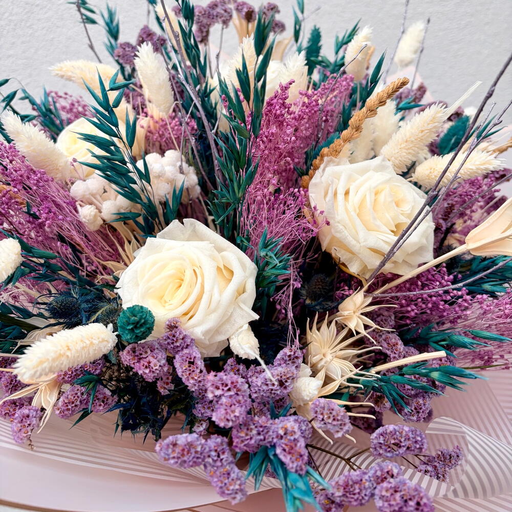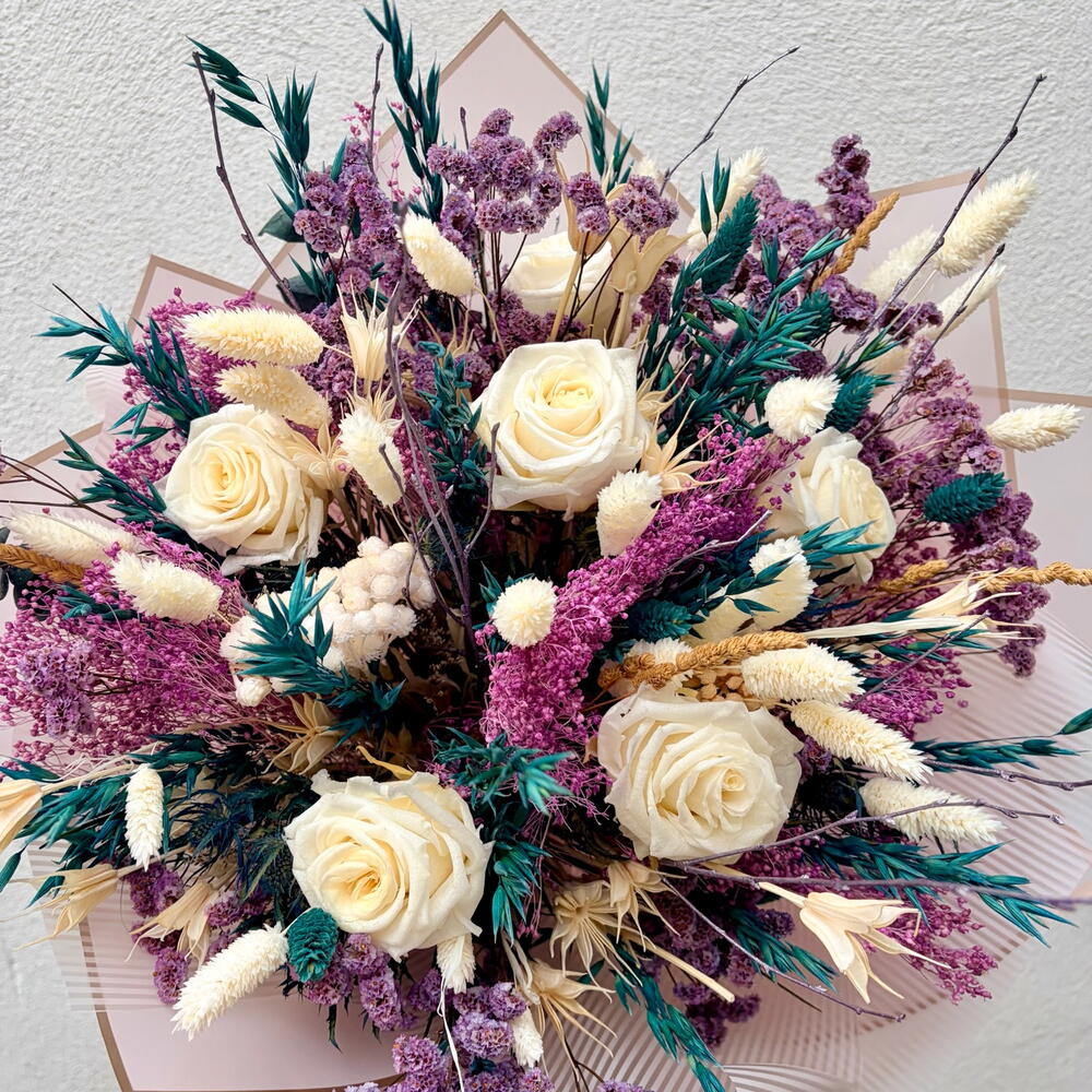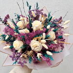 Фиолетовая романтика - большой букет сухоцветов со стабилизированными розами, долговечный, любовь, романтичный, думаю о тебе, праздничный подарок
