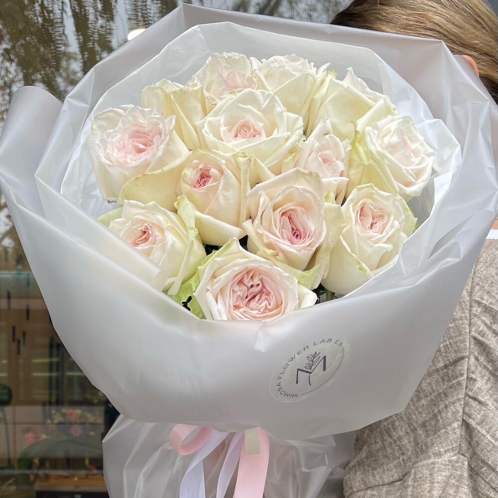 packaging design - 2 шт. ribbon satin - 3 шт. white ohara rose - 13 шт.