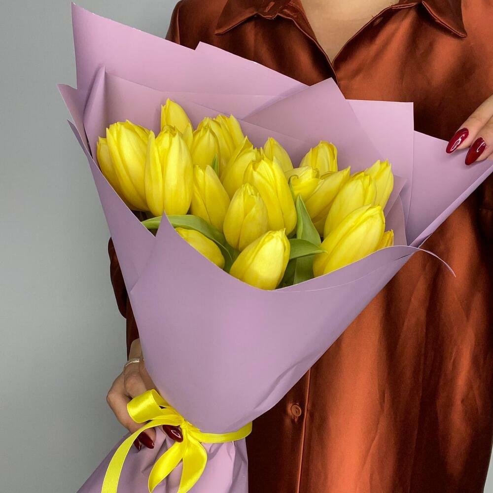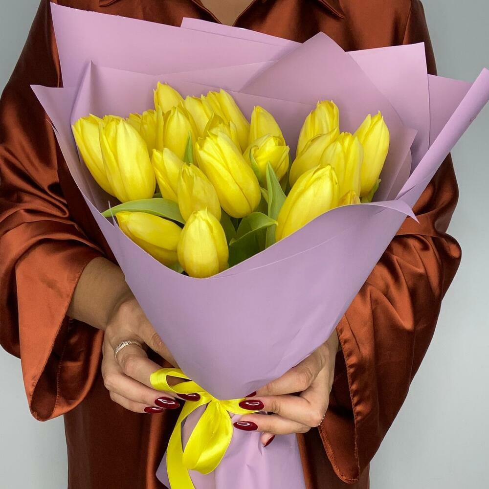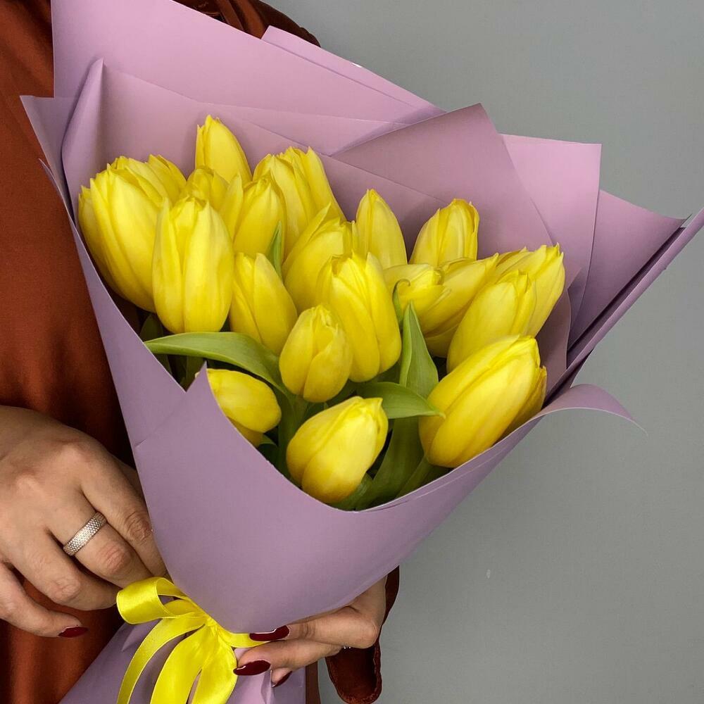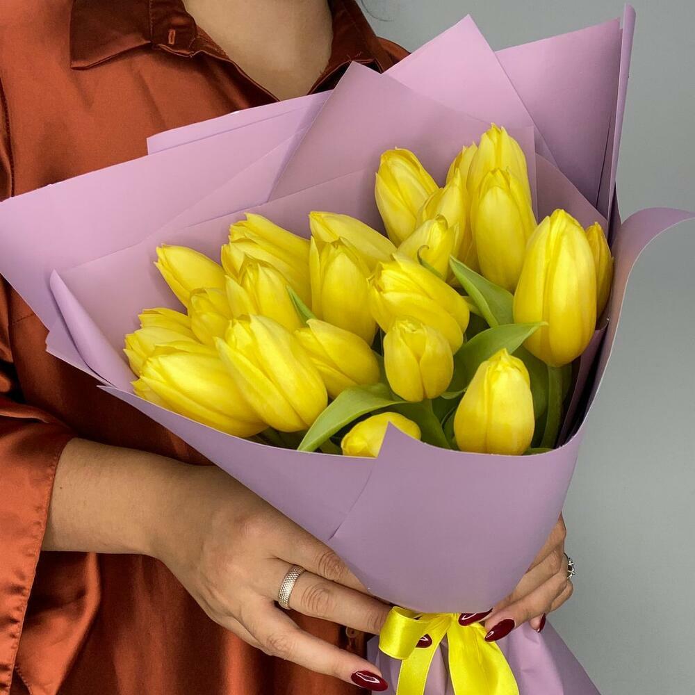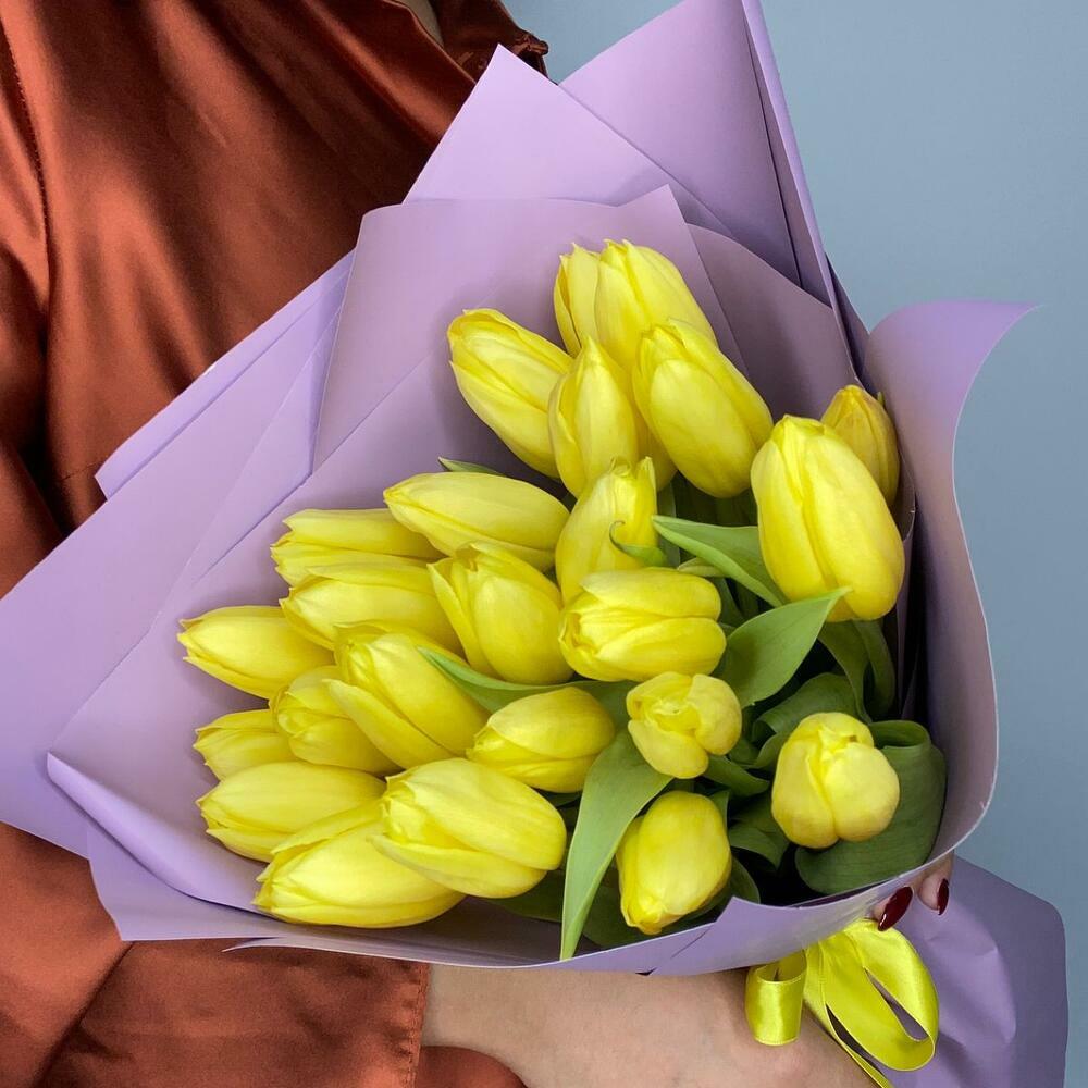 24 тюльпана. Букет жёлтых голландских тюльпанов. Тюльпаны приедут закрытыми, чтобы получатель смог насладиться невероятной красотой их раскрывающихся бутонов 🌸 Тюльпаны следует хранить в прохладном месте. Чтобы букет тюльпанов сохранялся дольше, подрежьте стебли и меняйте воду каждые 1–2 дня. Тюльпаны считаются весенними цветами и отлично подходят для весеннего настроения. 24 тюльпана — отличная идея подарка на день рождения, Международный женский день, День святого Валентина и любой другой повод.