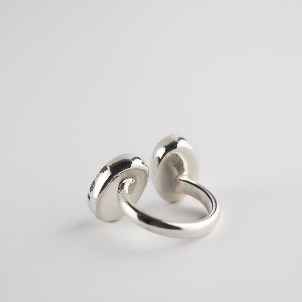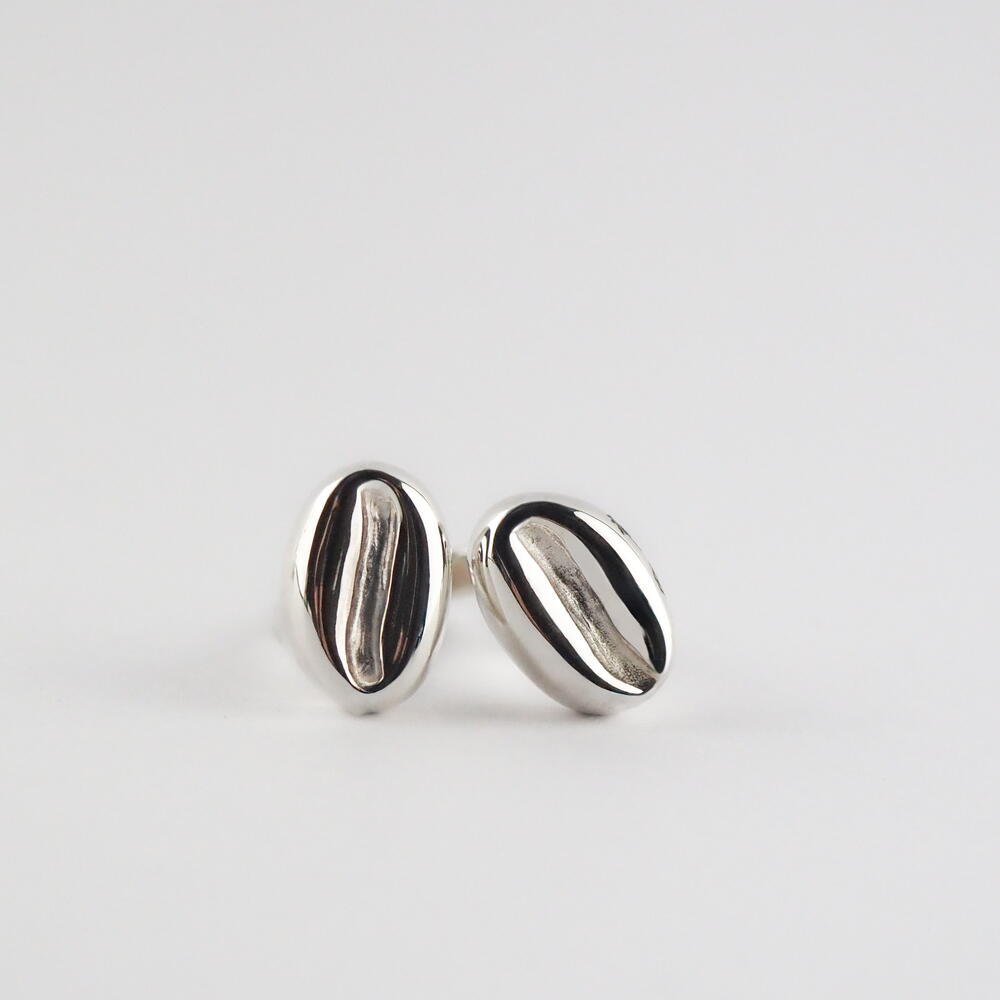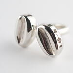 Кольцо из серебра .925, регулируемое и удобное, в форме соединения двух кофейных зерен. Часть коллекции Cafeto от Mina Palmera, разработанной Пабло Галисия и выполненной Энрике Албавера. Сочетайте его с серьгами café triple.