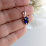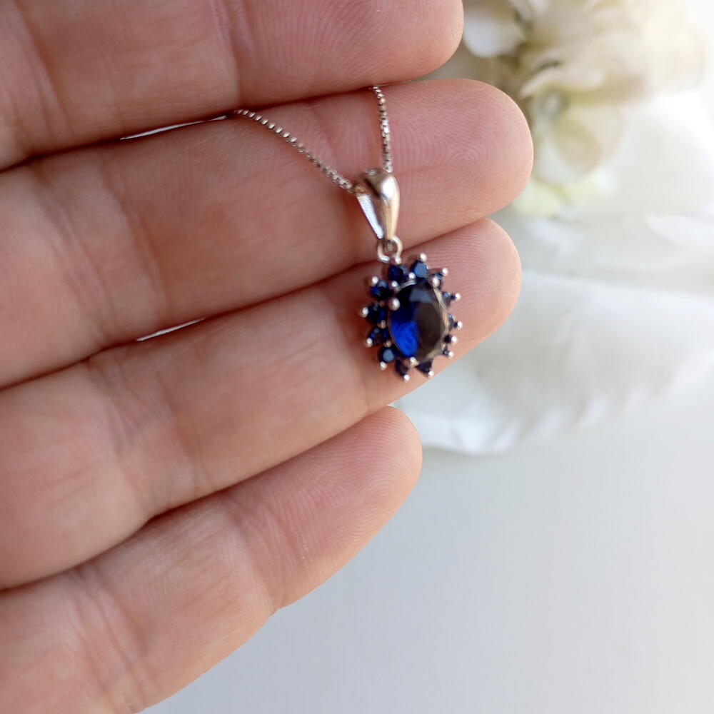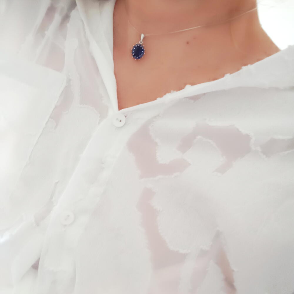 Великолепное колье, полностью выполненное из серебра первой пробы с синим цирконом. Идеально, чтобы придать элегантный штрих света и цвета.