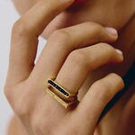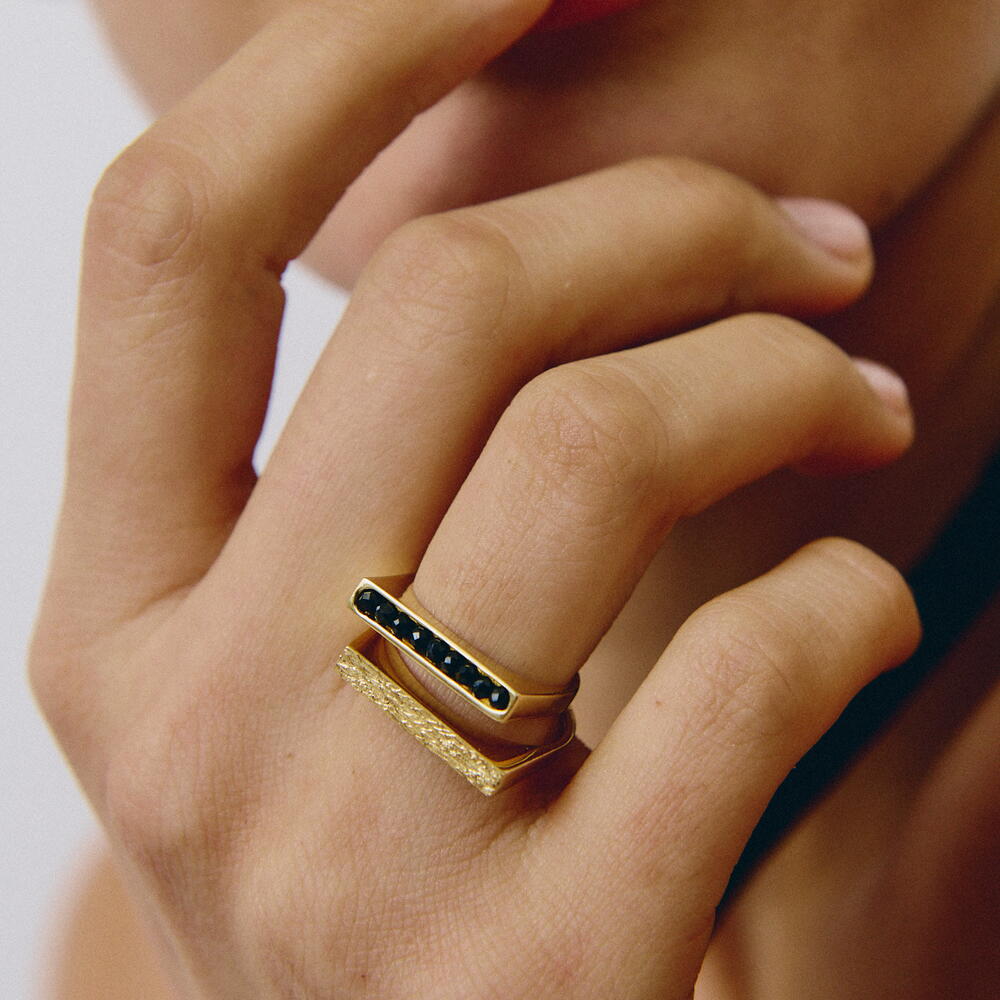 Набор из двух прямоугольных колец из серебра с позолотой и чёрной шпинелью