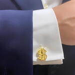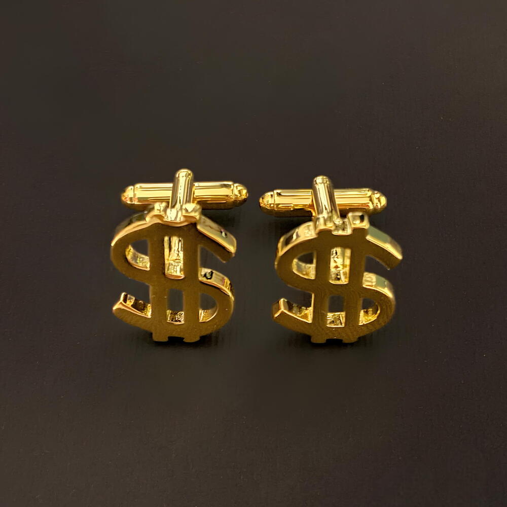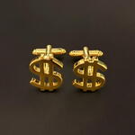 Запонки для рубашки в форме доллара из коллекции «Финансы». Золотистого цвета с основанием из нержавеющей стали.